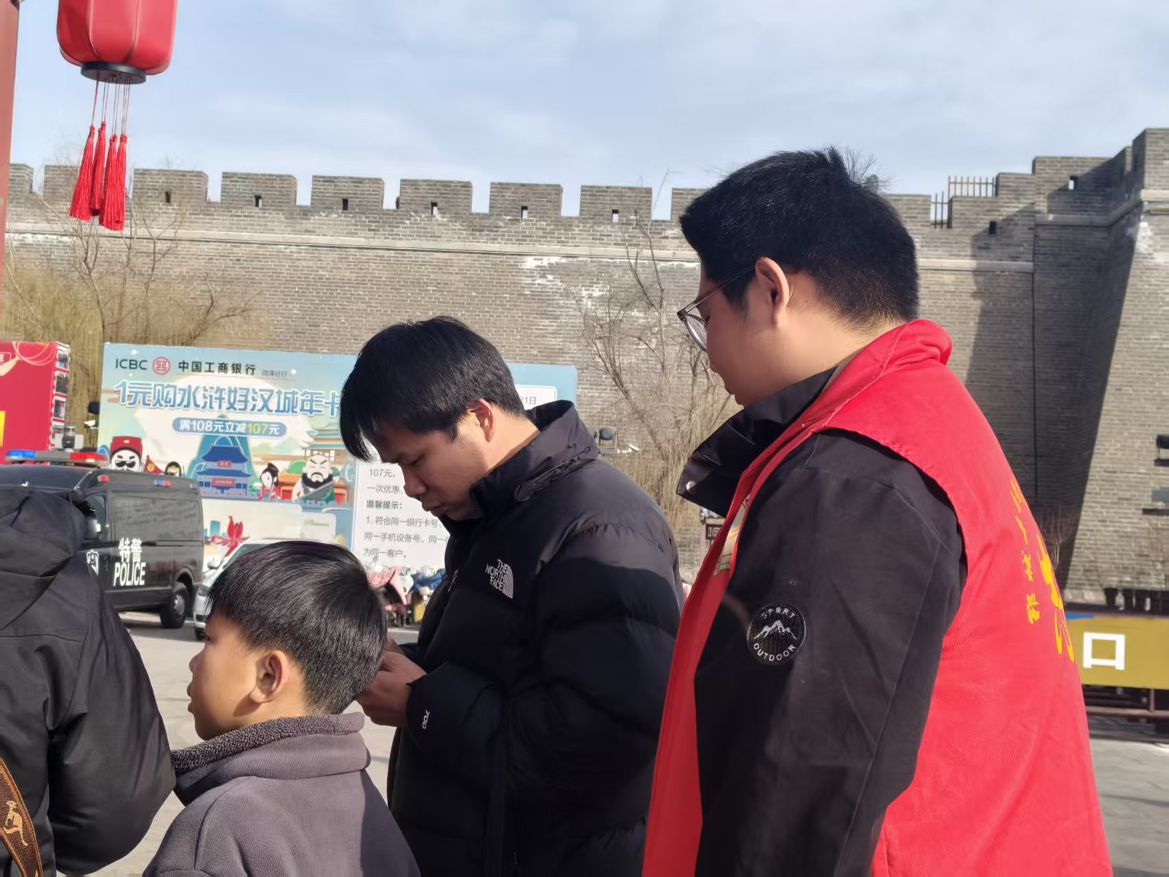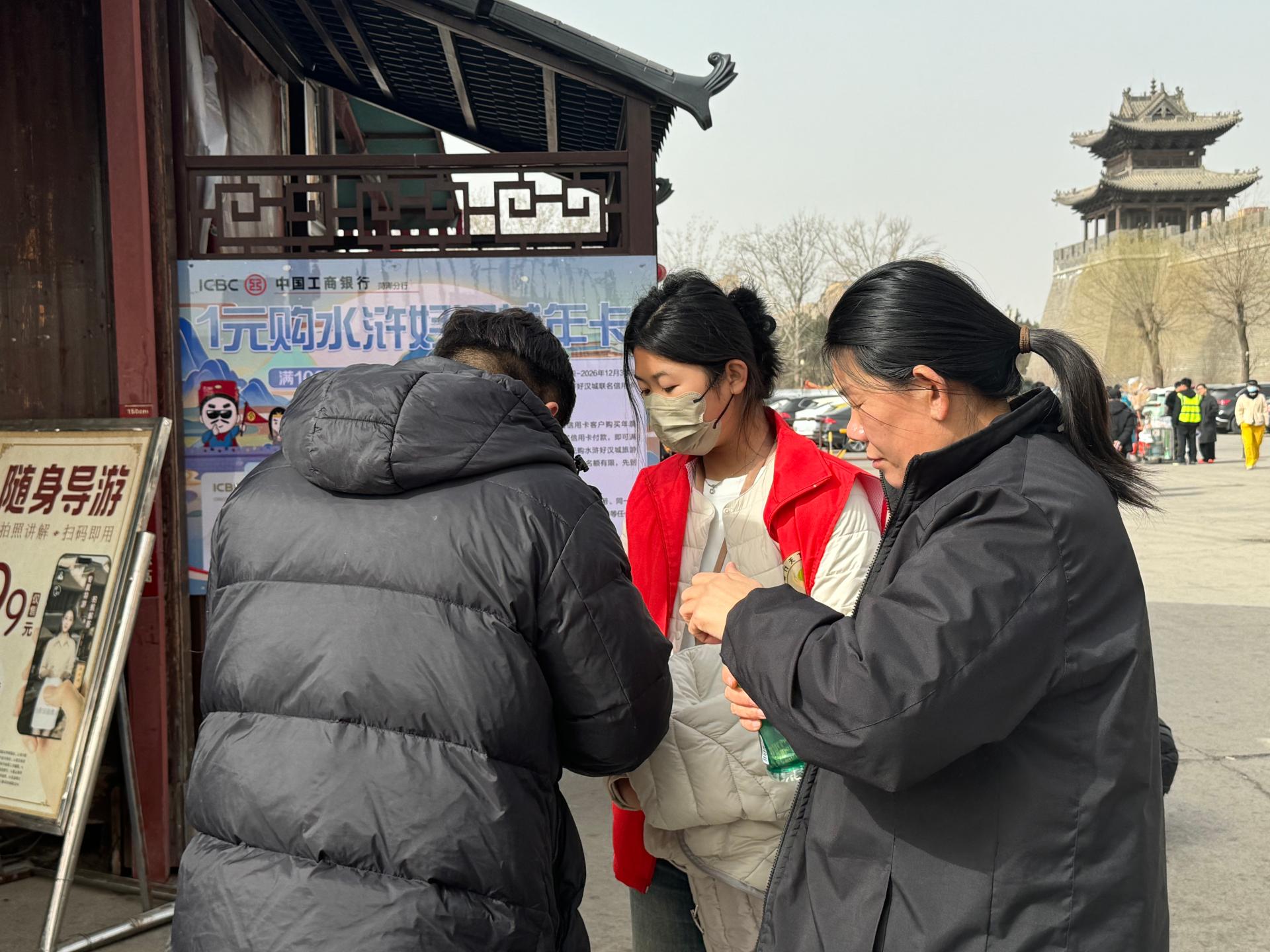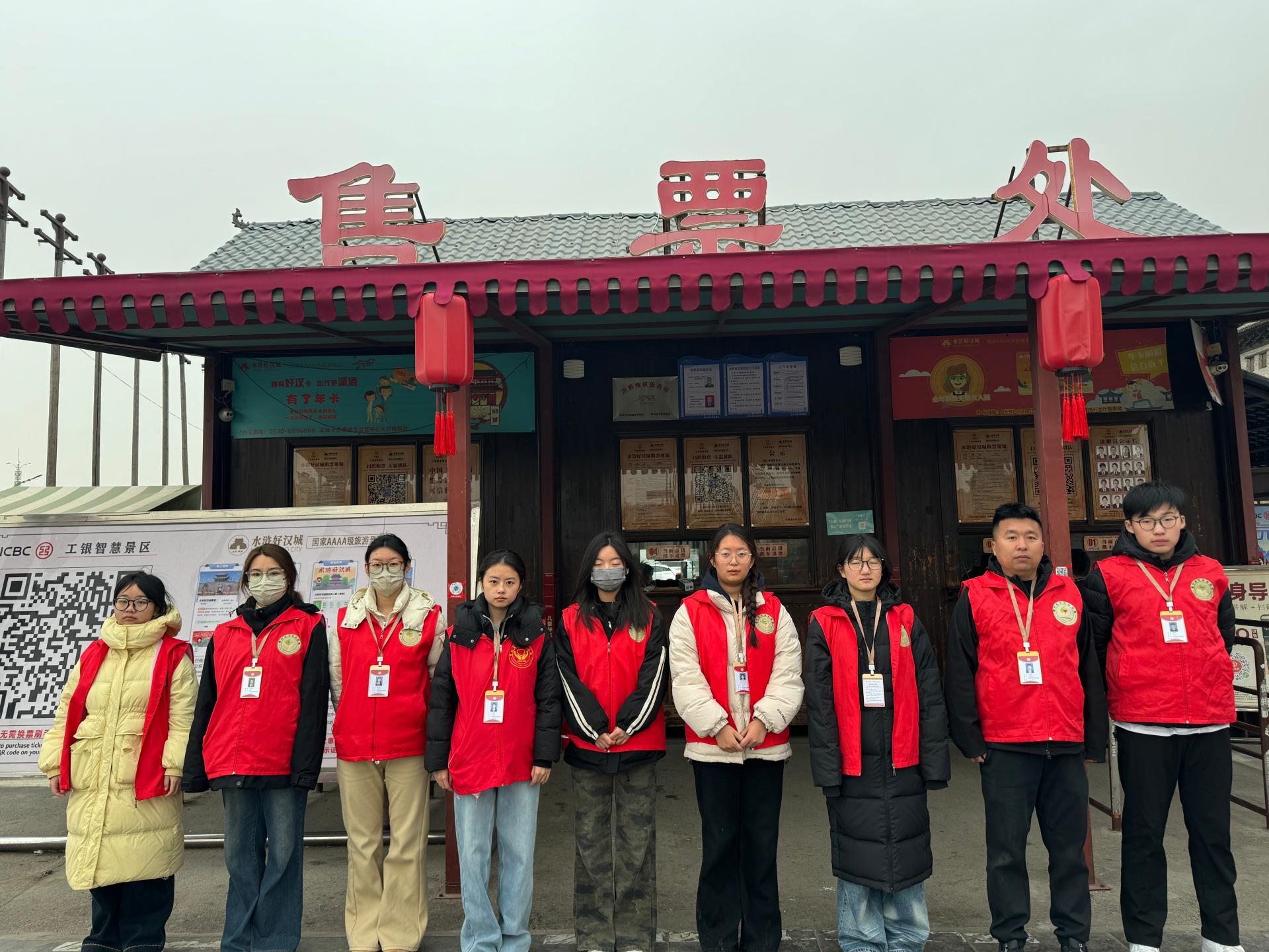 郓城县尚德志愿者协会带领尚德大学生志愿服务队,走进水浒好汉城免费为游客扫码购票,维持秩序,指挥规范停车等志愿服务。