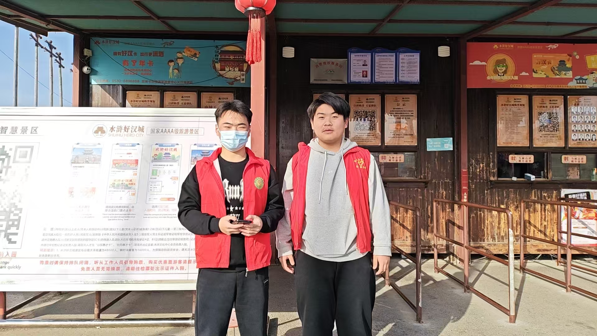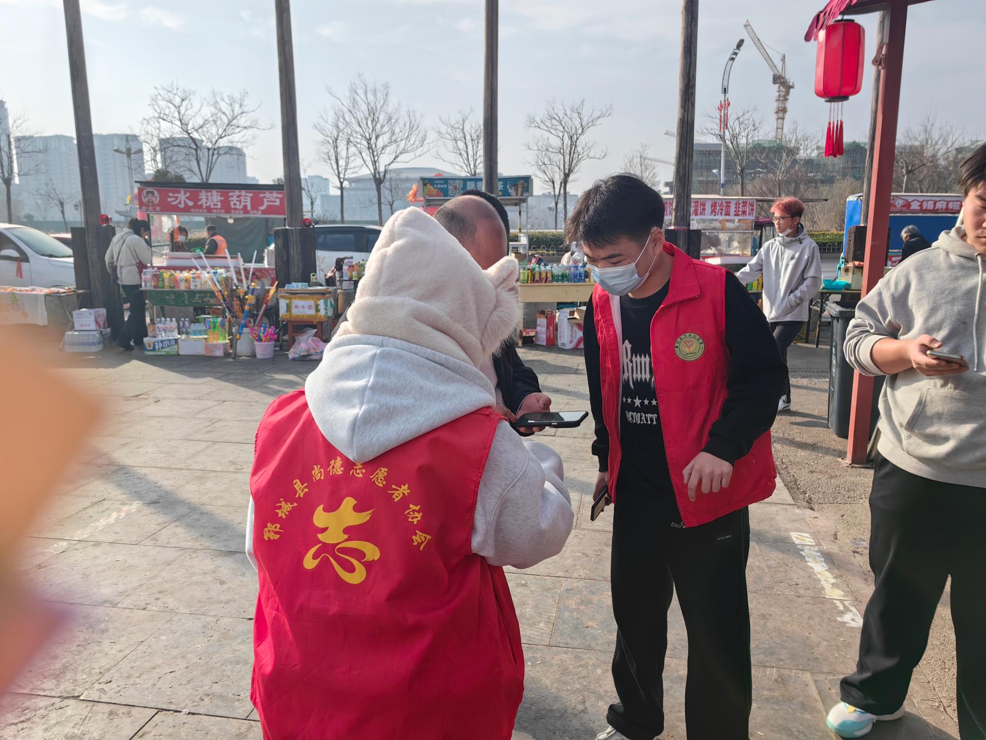 郓城县尚德志愿者协会带领尚德大学生志愿服务队走进水浒好汉城,免费为游客扫码购票,指挥规范停车,维持秩序等志愿服务。