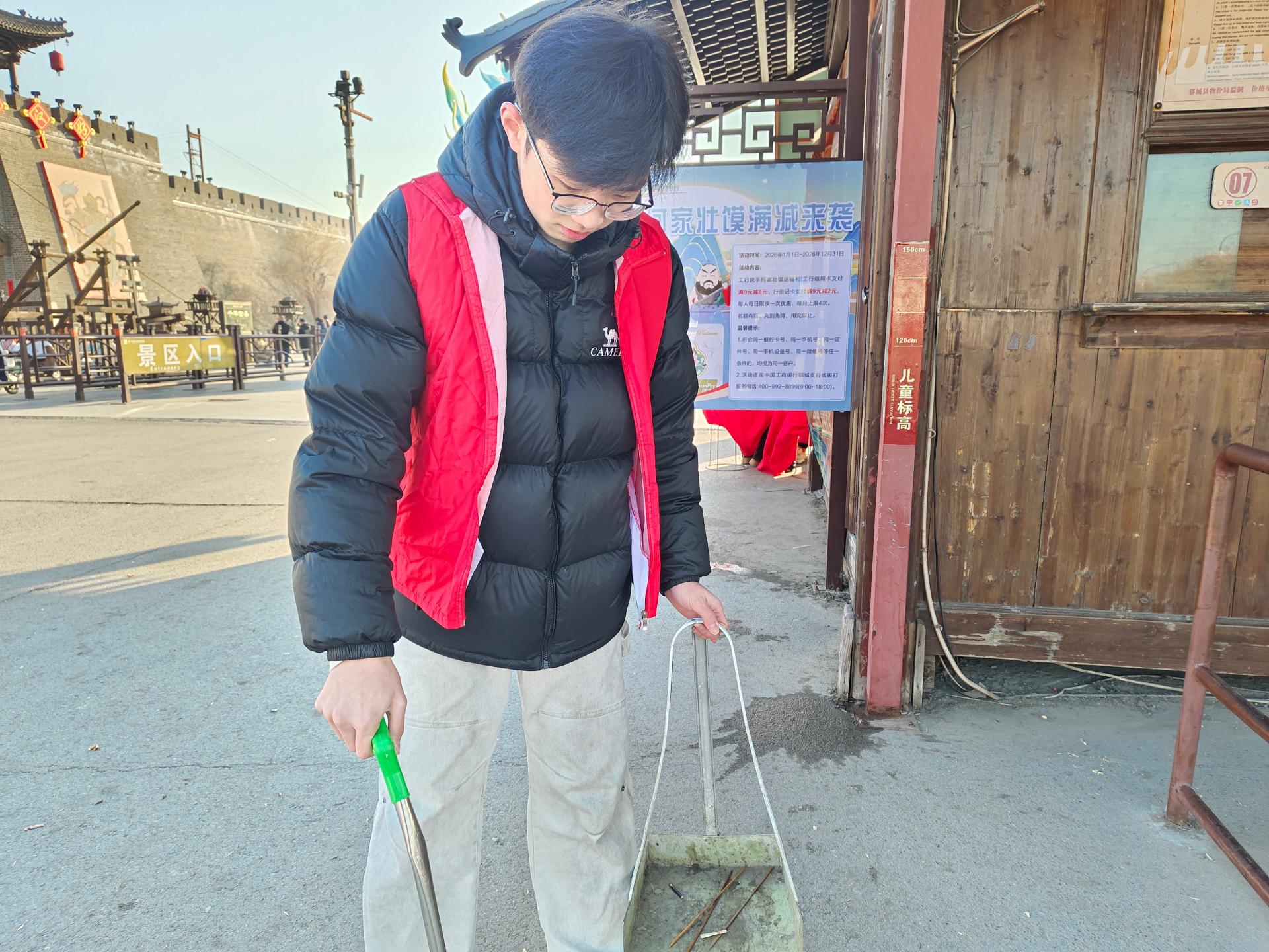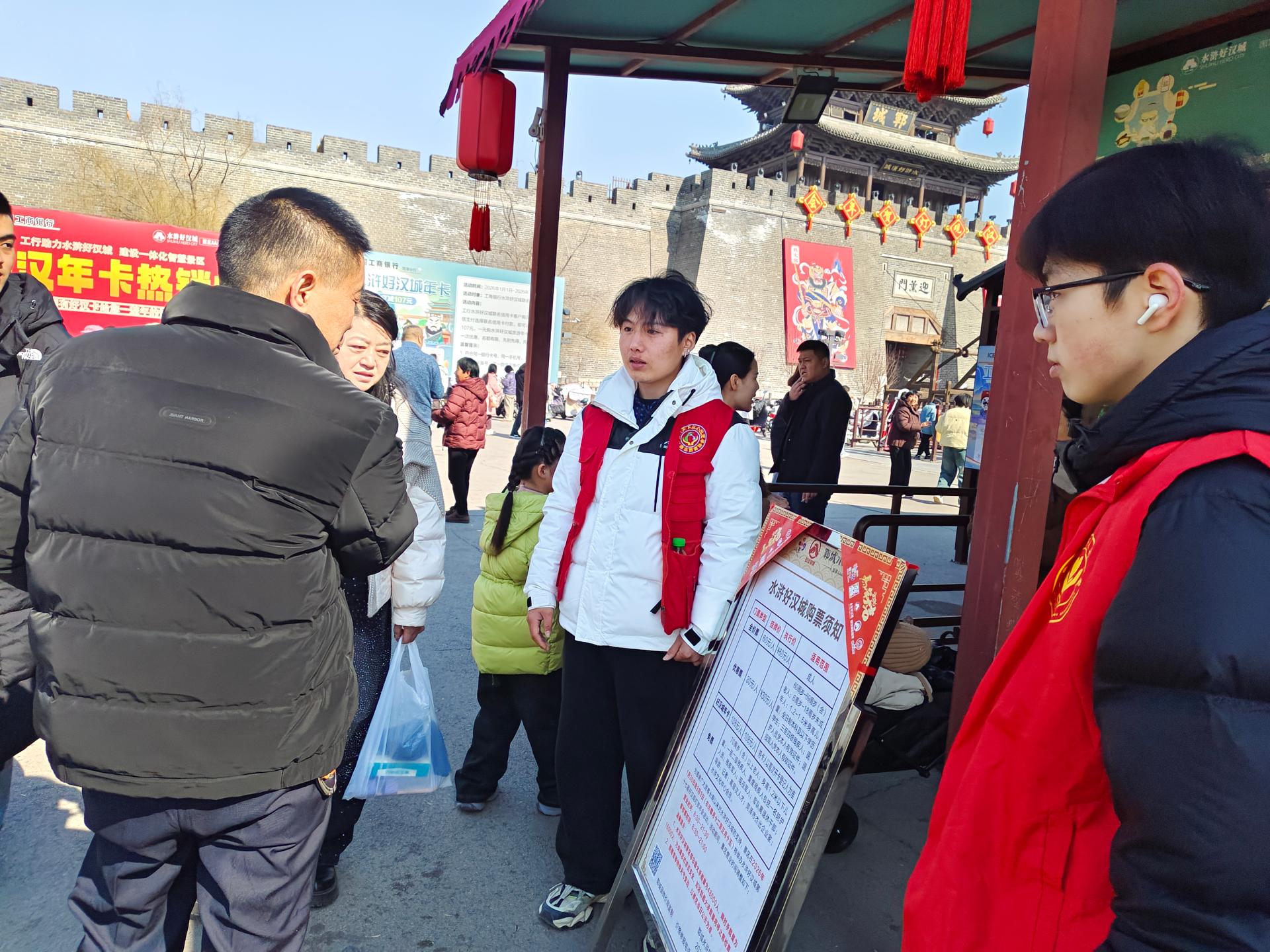 郓城县尚德志愿者协会带领尚德志大学生志愿服务队走进水浒好汉城免费为游客扫码购票、维持秩序、指挥规范停车、拾捡垃圾等志愿服务。