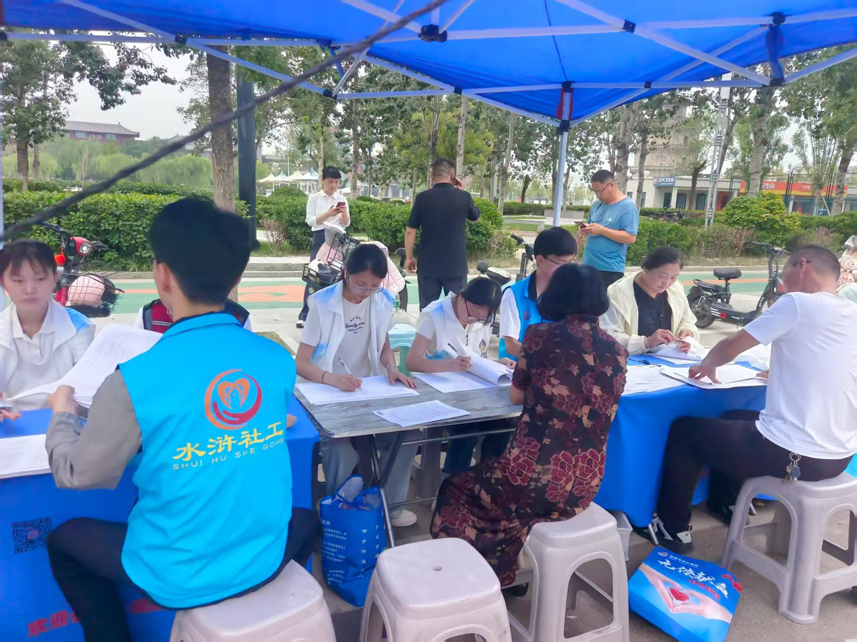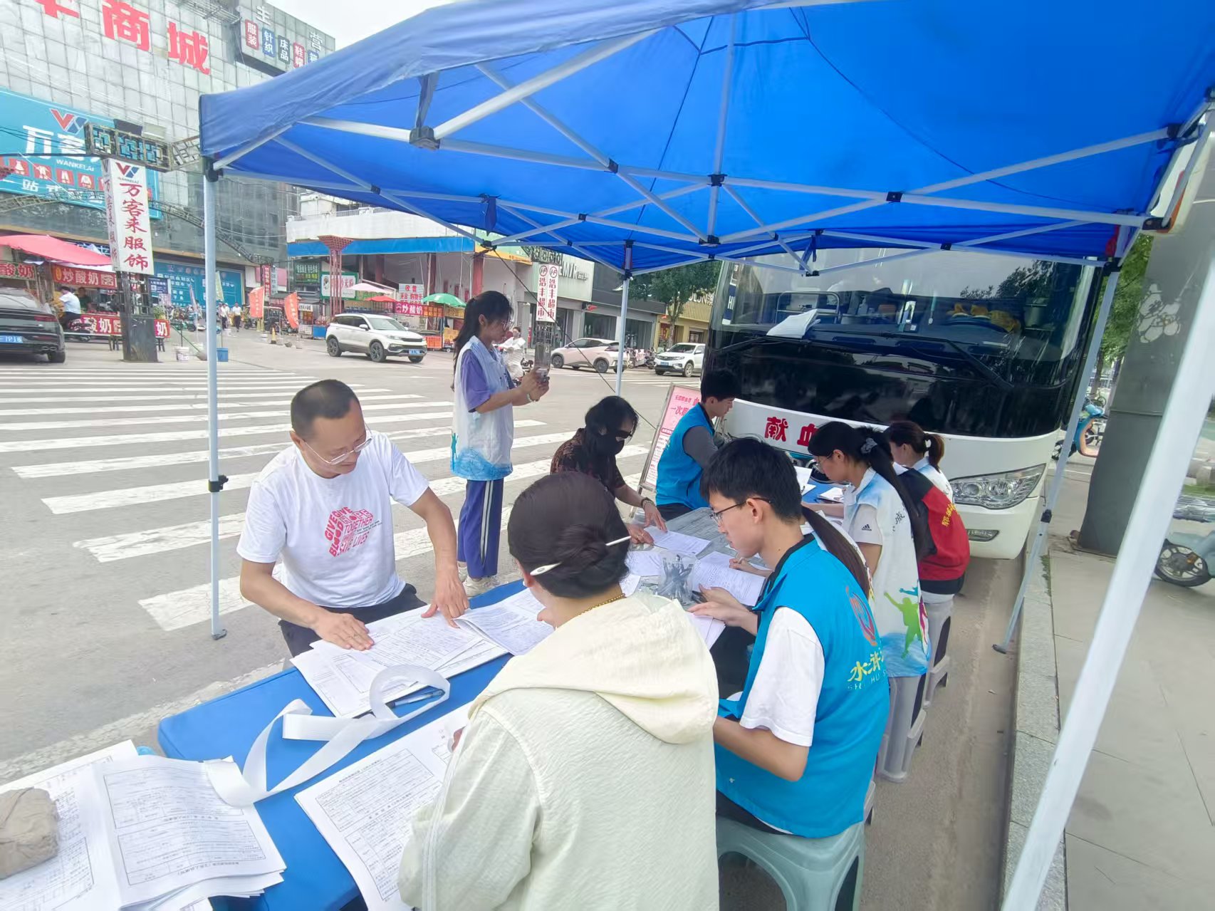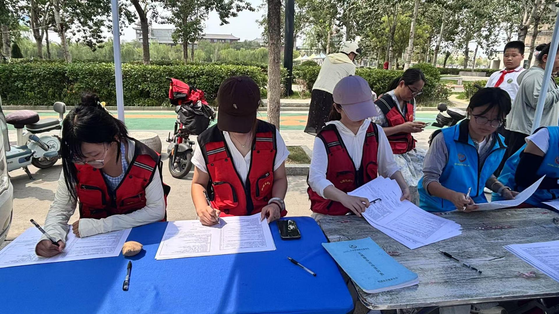 郓城县志愿者协助协助菏泽市中心血站工作人员一起为献血者填写资料讲解献血的好处及注意事项,帮助献血者看护交通工具、在拥挤的时候维持秩序
