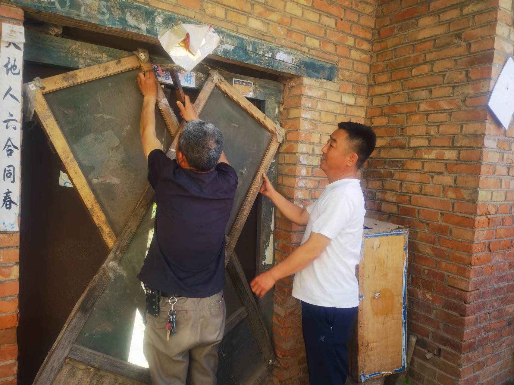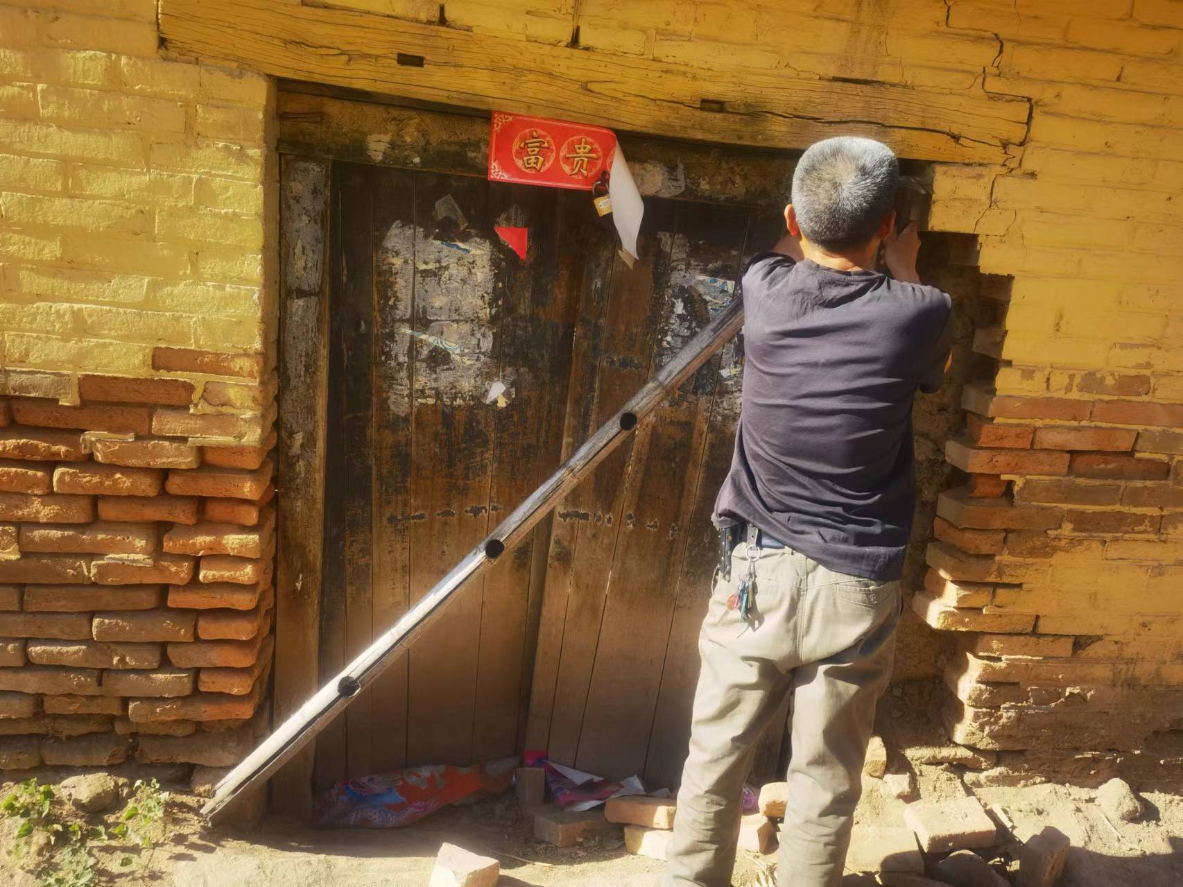 牛张楼村志愿者以及村干部于今日排查危房,对村里的危房进行拍照,围堵,是否挂牌,等录入信息,积极配合上级安排。…………..